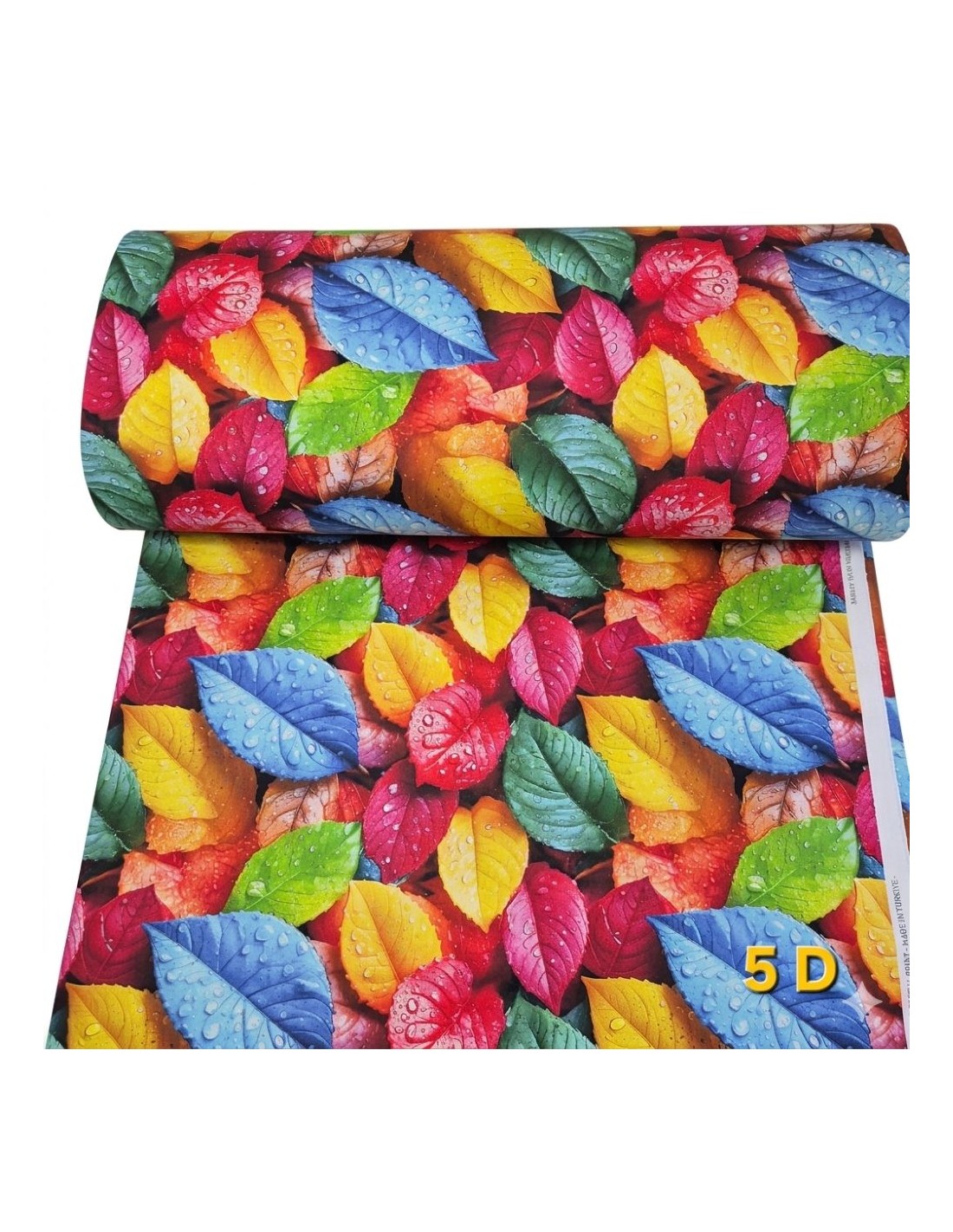 Bumbac satinat cu frunze colorate 5D