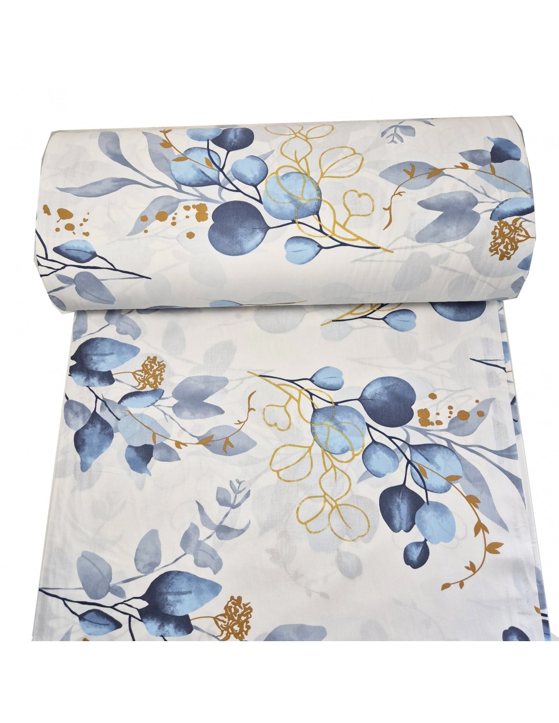 Bumbac satinat cu flori albastre